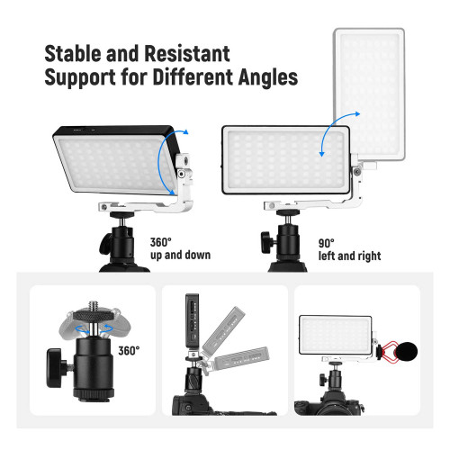 بدنه این محصول از آلومینیوم مقاوم ساخته شده که علاوه بر استحکام بالا، وزن سبکی هم داره. وزن کلی این ویدیو لایت فقط 310 گرمه که حمل و استفاده از اون رو خیلی راحت کرده. ابعاد 74 در 135 میلیمتری هم نشون میده با یه لایت جمعوجور و پرتابل طرف هستیم که حتی داخل کیف دوربین یا کولهپشتی راحت جا میشه. همین ویژگیها باعث شده برای استفاده در لوکیشنهای مختلف بدون دردسر بتونین اون رو همراه خودتون داشته باشین.