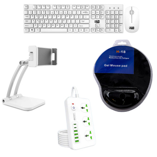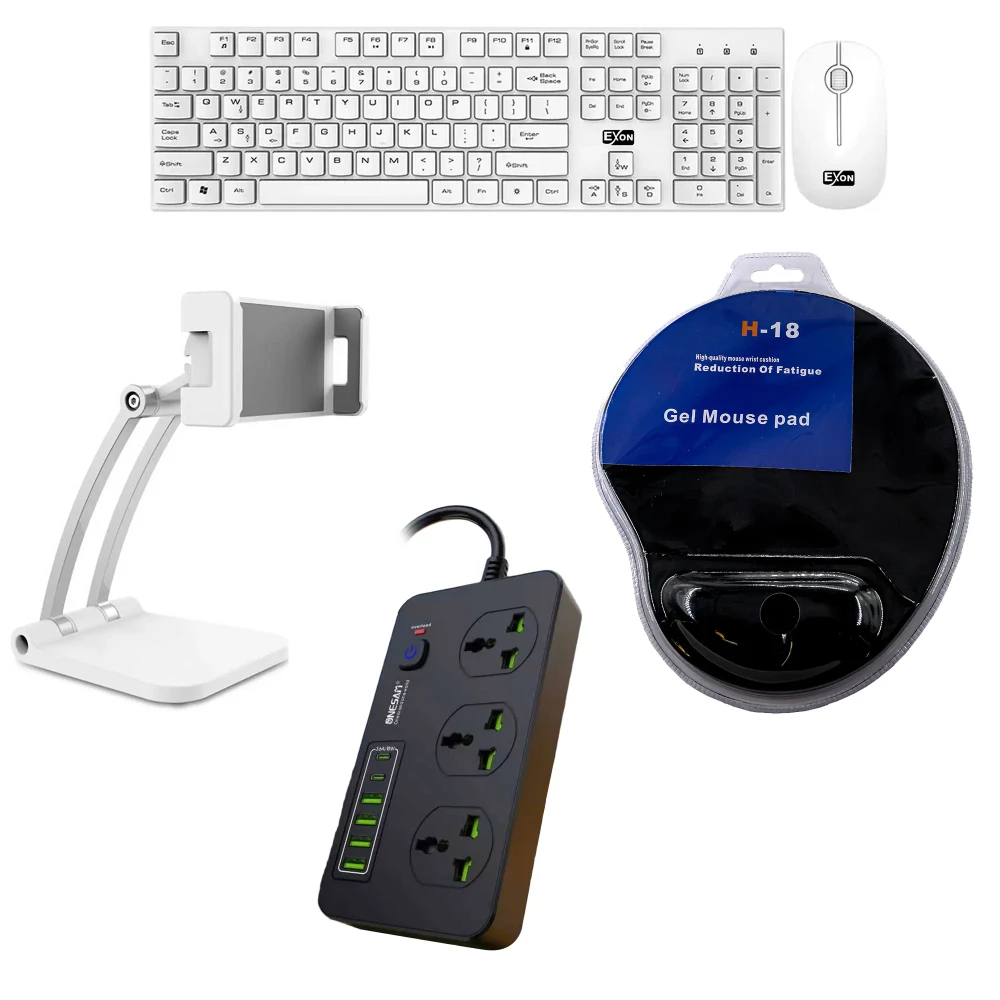 برای افزایش بهرهوری و راحتی در محیط کار، استفاده از لوازم جانبی مناسب اهمیت زیادی داره. پکیج اداری 1 با ارائهی چهار محصول کاربردی، نیازهای اساسی کاربران اداری رو پوشش میده. این پکیج شامل کیبورد و ماوس بیسیم اکسون مدل GK600، پایه نگهدارنده موبایل و تبلت مدل Q010، ماوس پد ژلهای طبی مدل H18 و سهراهی برق 3 خانه وان سام مدل T81 با کابل 3 متری هست.