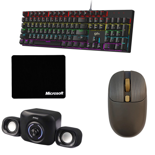 برای تجربهی بهتر و کارآمدتر در استفاده از کامپیوتر، داشتن لوازم جانبی مناسب و باکیفیت اهمیت زیادی داره. پکیج لوازم جانبی کامپیوتر ارائهشده شامل چهار محصول کاربردی و ضروریه که هر کدوم نقش مهمی در بهبود عملکرد و راحتی کار با سیستم دارن. این پکیج شامل کیبورد گیمینگ با سیم اکسون مدل ZYG800 RGB، ماوس بیسیم ویویتار مدل M07، اسپیکر کامپیوتر جدل مدل SD560P و ماوس پد MICROSOFT مدل NU68 هست.