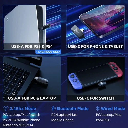 - اتصال بیسیم پایدار با بلوتوث 5.4 و دانگل Type-C