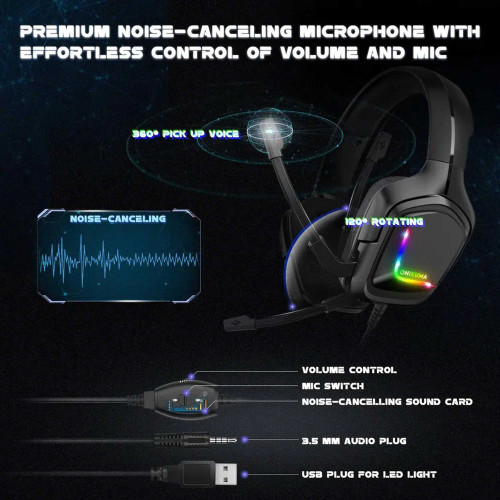 هدست گیمینگ Onikuma مدل K20 نور پسزمینه RGB داره و یه میکروفون هم برای اون طراحی شده. این میکروفون قابلیت قطع و وصل شدن داره و این کار با استفاده از دکمهای که روی هدفون قرار گرفته، انجام میگیره. از قابلیتهای دیگه این هدفون میتونیم به نویز کنسلینگ هم اشاره کنیم.