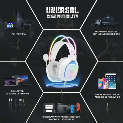 هدست گیمینگ با سیم اونیکوما مدل X22 RGB با لپتاپها، کامپیوترهای خانگی و کنسولهای بازی مانند PS4، PS5 و XBOX سازگاره.