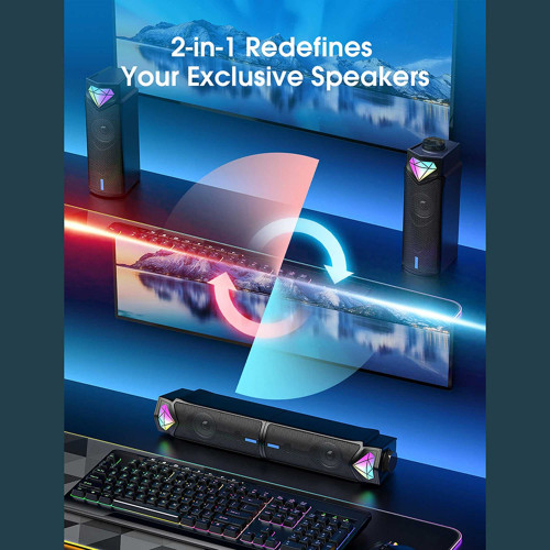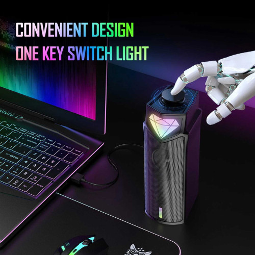 اسپیکر بلوتوثی اونیکوما مدل L1 با ابعاد 205×93×70 میلیمتر و وزن 708 گرم، یه محصول پرتابل و سبک به حساب میاد که بهراحتی میتونین جابهجاش کنین. این اسپیکر از دو واحد صوتی تشکیل شده و با کلیدهای مکانیکی که داره، کنترلش خیلی سادهست. طراحی جمعوجور این محصول باعث میشه برای استفاده روی میز کار، کنار لپتاپ یا حتی توی سفر و دورهمیهای کوچیک خیلی مناسب باشه. نورپردازی RGB و نشانگر LED هم بهش ظاهری مدرن و جذاب داده که حسابی چشمنوازه.