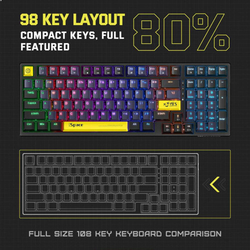 کیبورد G38 با ابعاد 133 در 381 میلیمتر طراحی شده و 98 کلید مکانیکال داره که برای یه کیبورد گیمینگ واقعا ایدهآله. این تعداد کلید نه خیلی زیاده و نه خیلی کم؛ بلکه دقیقا به اندازهایه که همه نیازهای گیمرها و تایپیستها رو پوشش میده. جنس بدنه این کیبورد از پلاستیک ساخته شده که خیلی سبک و مقاومه؛ کابلش هم از جنس پلاستیکیه که دوام بالایی داره و در برابر کشیدگی یا گره خوردن کاملا مقاومه. طول این کابل 1.8 متره و رابط تایپ سی داره که سرعت و کیفیت اتصال بالای اون رو تضمین میکنه.