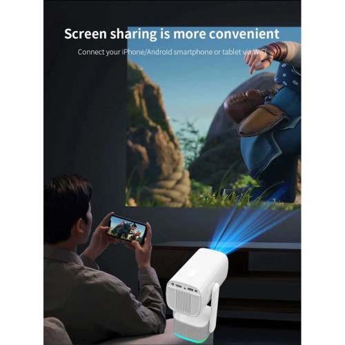 این ویدئو پروژکتور دارای درگاههای HDMI، USB و خروجی هدفون هست و همچنین از بلوتوث و WIFI پشتیبانی میکنه.