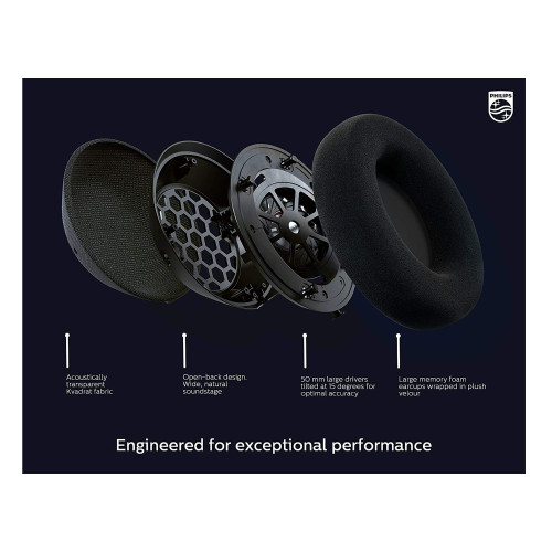 تنظیم عالی دیافراگمهای پلیمری چند لایه 50 میلیمتری، بیس قدرتمند، کامل و نرم و midrange و تاثیرگذار تحویل میدهد. با صدایی با کیفیت Hi-Res Audio، به هنگام اتصال سیمی به یک منبع با وضوح بالا میتوانید تاثیر کامل هر نت را حس کنید. این هدفون دارای طراحی پشت باز Open-back است و با توجه به پارچههای روکش گوشی، صدایی وسیع و طبیعی را برای شما به ارمغان میآورد و از طریق از بین بردن فشار هوای ایجاد شده پشت دیافراگمها، صدایی گسترده و وسیع تولید میکند. این هدفون یک کابل TRS جدا شونده برای اتصال به دستگاههای دارای جک 8/1 دارد. همچنین یک کابل TRS برای اتصال به جک 2.5 میلی متری TRRS و یک آداپتور 1/8 TRS به 4/1 اینچی TRS نیز وجود دارد.
