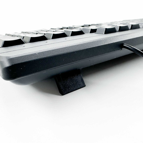 ابعاد این محصول 174×442 میلیمتر هست و ضخامت اون 29 میلیمتر، بنابراین فضای زیادی رو روی میز اشغال نمیکنه و در عین حال، کار با اون راحته. بدنهی این کیبورد از پلاستیک مقاوم ABS ساخته شده که دوام بالایی داره و در برابر ضربه و خط و خش مقاومه.