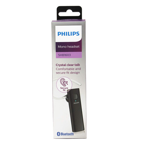 هدست بی سیم مدل SHB1603 از محصولات شرکت فیلیپس است. این هدست با ایرباد های سیلیکونی و فوق العاده نرم به گونه ای طراحی شده که حداکثر راحتی را در استفاده های طولانی مدت برای شما ایجاد کند. این هدفون با کیفیت، وزن بسیار کمی دارد و شما به ندرت متوجه آن بر روی گوشتان می شوید تا زمانیکه تماسی داشته باشید. همچنین بطور ایمن بر روی گوش شما قرار می گیرد تا در هنگام حرکت، ثابت بماند. هدست SHB1603 دارای میکروفون داخلی است که امکان دریافت تماس و مدیریت تماس صوتی را برای شما فراهم می کند. این هدست بطور همزمان می تواند از طریق بلوتوث با دو گوشی موبایل مچ شود و محدوده عملکرد حداکثر 10 متری ایجاد می کند. همچنین با تلفن همراه، تبلت و لپ تاپ سازگاری دارد. شما می توانید در زمان رانندگی از هدست SHB1603 برای گوش دادن به مسیرهای ناوبری از تلفن خود استفاده کنید و یا از آن برای گوش دادن به رادیو، موزیک ودیگر فایل های صوتی استفاده کنید. این هدست دارای باتری لیتیوم پلیمر 240میلی آمپر ساعت قدرتمند است و از طریق پورت USB می توانید آن را شارژ کنید.