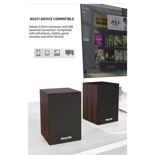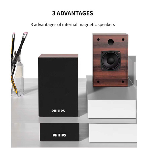 اگه به دنبال یه اسپیکر کامپیوتر باکیفیت، با طراحی ساده اما صدایی شفاف و قوی هستین، فیلیپس مدل SPA20 یکی از بهترین انتخابهاست. این اسپیکر با وزن 900 گرم و ابعاد 135×95×90 میلیمتر طراحی شده تا روی میز کار یا کنار لپتاپتون کمترین فضا رو اشغال کنه. بدنه چوبی این مدل باعث شده تا کیفیت صدای خروجی گرمتر و شفافتر باشه. اتصال این اسپیکر هم به دو صورت بیسیم از طریق بلوتوث و با سیم از طریق جک 3.5 میلیمتری (AUX) انجام میشه، که انعطاف بالایی برای استفاده در شرایط مختلف داره.