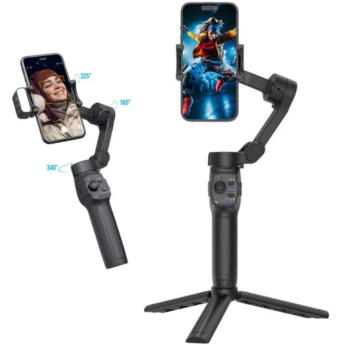 سایر ویژگی ها | تثبیت سه محوره، کلید تغییر زاویه با یک لمس، نور LED مغناطیسی جداشونده، ردیابی هوشمند سوژه، سازگار با iOS و اندروید، قابلیت پاوربانک |
