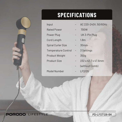 Porodo Lifestyle Multi-Styling Hair Dryer Set PDLFST126BK LFS126