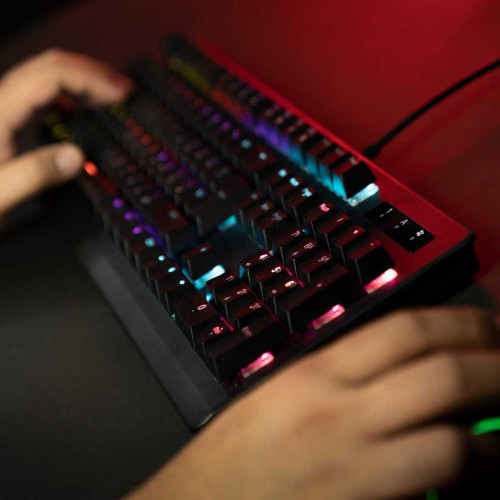 توی این مدل کلیدهای BLACK SWITCH رو هم میبینیم که با تحریکپذیری کمتر برای بازیهای سرعتی مناسبن. قابلیتهای دیگه این کیبورد هم شامل موارد زیر هستن:
