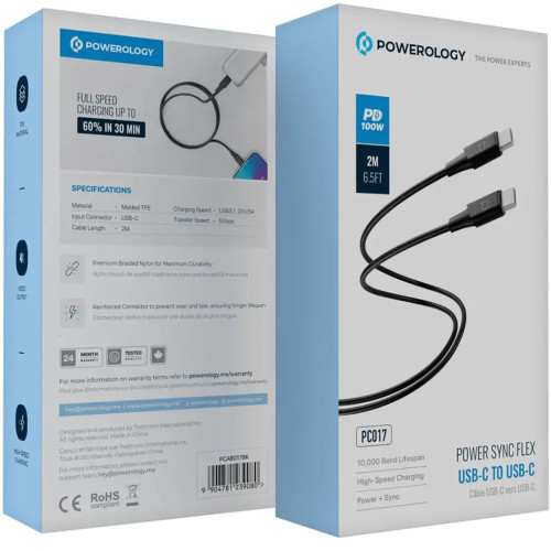 کابل شارژ Type-C به Type-C پاورولوژی مدل PCAB017BK PC017