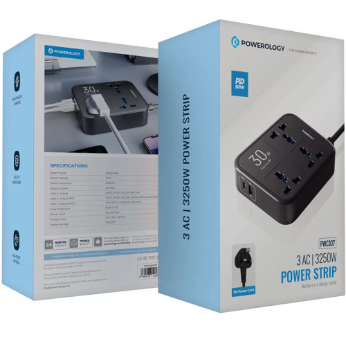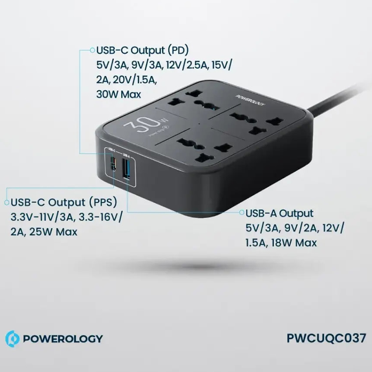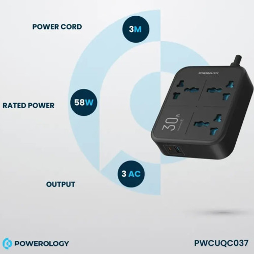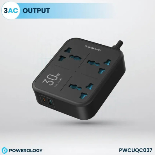 چند راهی و محافظ برق سه سوکت پاورولوژی مدل PWCUQC037