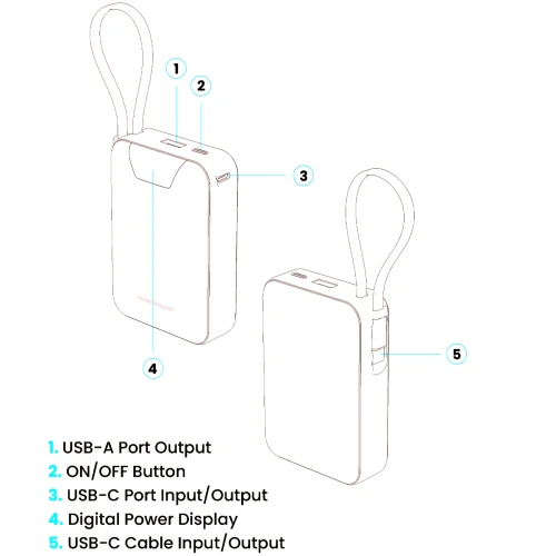 | توان خروجی | USB-C: 5V/3A, 5V/4.5A, 9V/2.22A, 10V/2.25A, 12V/1.67A, 22.5W Max، ، USB-C (Cable): 5V/3A, 5V/4.5A, 9V/2.22A, 10V/2.25A, 12V/1.67A, 22.5W Max، ، USB-A: 5V/3A, 5V/4.5A, 9V/2A,10V/2.25A, 12V/1.5A, 22.5W Max |