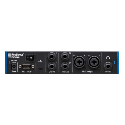 کارت صدا Studio 68c از طریق رابط USB-C به سیستم متصل میشه و تغذیه خودش رو هم از طریق USB دریافت میکنه. این دستگاه دارای 6 ورودی آنالوگ و دیجیتال (ورودیهای XLR/TRS با پریآمپهای XMAX-L و ورودی دیجیتال S/PDIF) و 6 خروجی آنالوگ و دیجیتال (شامل TRS ¼ اینچ و خروجی دیجیتال ADAT/S/PDIF) هست. کیفیت ضبط این دستگاه تا 24 بیت و 192 کیلوهرتز هست که صدایی شفاف و دقیق ارائه میده و با فانتوم پاور 48V، امکان استفاده از میکروفونهای کندانسور رو فراهم میکنه.