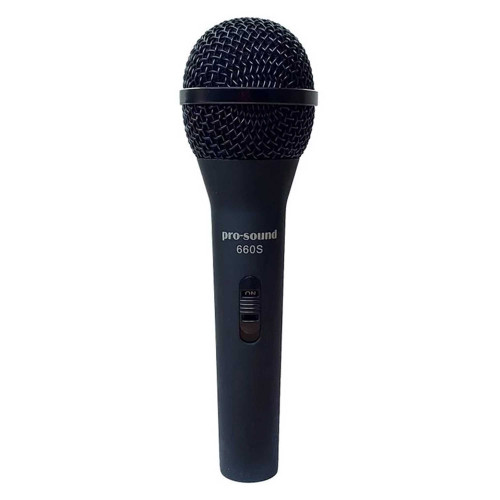 میکروفون داینامیک دستی با سیم پرو ساند مدل 660S از گروه میکروفونهای داینامیکه و با الگوی قطبی Super - Cardioid ساخته شده که باعث میشه تمرکز بیشتری روی صدای اصلی و کاهش صدای محیط داشته باشه. این میکروفون با سیم به دستگاههای مختلف متصل میشه و برای این کار از کانکتور XLR3 روی میکروفون و جک 6.35 میلیمتری برای اتصال به منبع دریافت صدا استفاده میکنه. حساسیت این مدل منفی 57 دسیبل و نسبت سیگنال به نویز (SNR) اون 74 دسیبل هست. از ویژگیهای دیگه این میکروفون میشه به کلید قطع و وصل صدا اشاره کرد که کاربردی و ضروری به نظر میرسه.