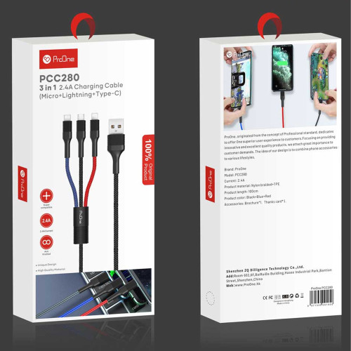 PROONE PCC280 3IN1 MICRO+LIGHTNING+TYPE-C CHARGING CABLE