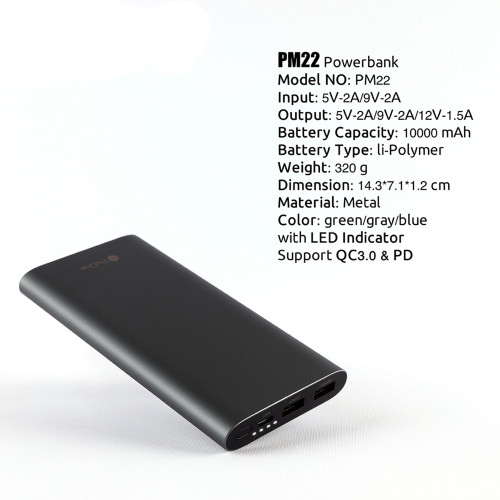 پاوربانک پرووان PM22 از فناوری Quick Charge 3 شرکت Qualcomm و فناوری Power Delivery پشتیبانی میکنه. باتری پاوربانک PM22 از نوع لیتیوم-پلیمر هست و ظرفیت اون 10000 میلیآمپر ساعته که در 5 ساعت به طور کامل شارژ میشه. از اونجایی که درگاه تایپ سی هم داره، قابلیت شارژ سریع هم از مشخصات این پاوربانک محسوب میشه.