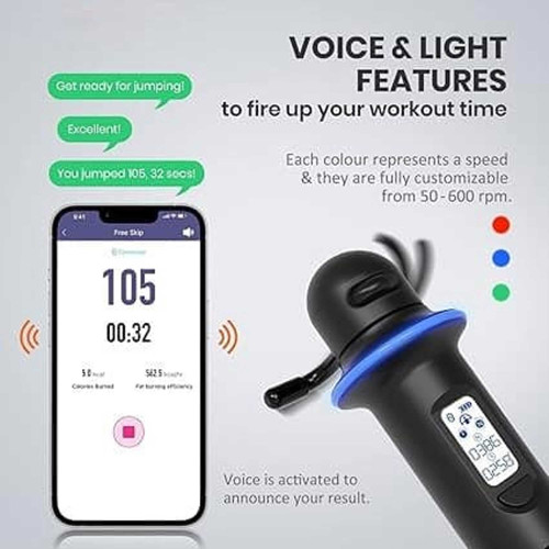 یکی از جذابترین ویژگیهای طناب هوشمند PGH600، نمایشگر دیجیتال اون هست که اطلاعات مهمی مثل تعداد پرشها، زمان تمرین و میزان کالری سوزانده شده رو نمایش میده. این طناب از بلوتوث نسخه 4.2 پشتیبانی میکنه و میتونین اون رو به اپلیکیشن اختصاصی متصل کنین تا تمریناتتون رو بهصورت دقیقتر کنترل کنین. منبع تغذیهی این دستگاه دو عدد باتری نیمقلمی هست که مصرف انرژی بهینهای داره. علاوه بر این، دستههای این طناب مجهز به حلقه نوری و اسپیکر داخلی هستن که یه تجربهی ورزشی مدرن و حرفهای رو بهتون ارائه میدن.