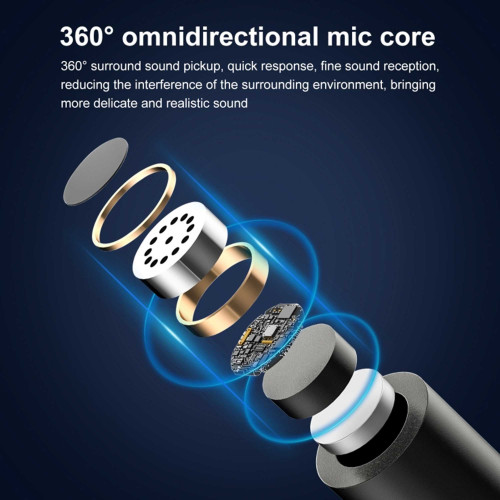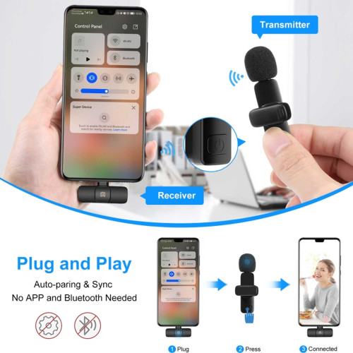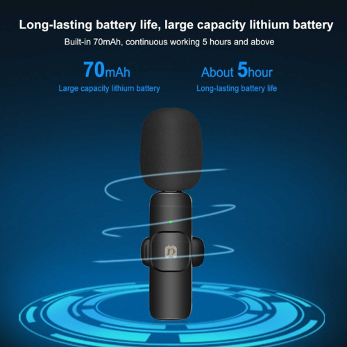 این میکروفون از نوع کاندنسر با الگوی قطبی Omni-Directional است که امکان ضبط صدایی واضح و شفاف رو در تمامی جهتها فراهم میکنه. ارتباط این میکروفون به صورت بی سیم با استفاده از رابط USB Type-C انجام میشه. محدوده عملکرد اون تا 20 متر، حساسیتش -38 دسیبل و منبع تغذیه از باتری داخلی با ظرفیت 70 میلیآمپر ساعت هست که حداکثر تا 5 ساعت در حالت ضبط عمل میکنه.