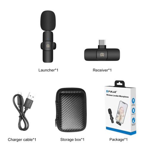 | اقلام همراه میکروفون | کیف | ۱ عدد فرستنده | ۱ عدد گیرنده | پاپ فیلتر | کابل USB Type-A به USB Type-C |
