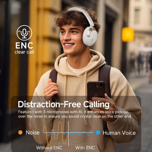 از نظر فنی، هدفون QCY H3 Pro هم بیسیمه و هم با سیم قابل استفادهست. یعنی هم میتونین از طریق بلوتوث نسخه 5.4 به دستگاهها متصلش کنین و هم با کابل AUX. محدوده عملکردش در حالت بیسیم تا 10 متره (بدون مانع) که برای استفادههای روزمره کاملاً کافی هست. این هدفون به درایور 40 میلیمتری مجهز شده که صدایی قدرتمند و عمیق تولید میکنه. همچنین وجود میکروفون داخلی باعث میشه مکالمات با کیفیت بالا انجام بشه. امکاناتی مثل عوض کردن آهنگ، کم و زیاد کردن صدا و پاسخ به تماسها هم از طریق کلیدهای فیزیکی روی هدفون قابل انجامه. از قابلیتهای مهم دیگه، اتصال همزمان به دو دستگاه مختلفه، که برای افرادی که بین گوشی و لپتاپ سوئیچ میکنن، کاربردی و مفیده. باتری 550 میلیآمپری این هدفون با تنها 2 ساعت شارژ، تا 55 ساعت در حالت عادی و 40 ساعت در حالت نویز کنسلینگ شارژدهی داره.