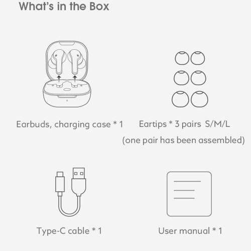 | اقلام همراه هدفون | کابل TYPE C | دفترچه راهنما | ۲ جفت سری سیلیکونی |