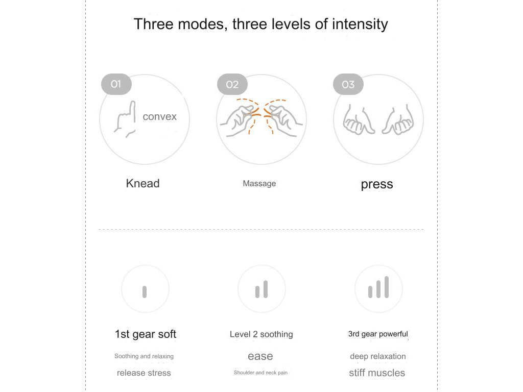 دارای 3 حالت ماساژ | حالت لرزش، حالت ورز دادن، حالت فشار دادن |