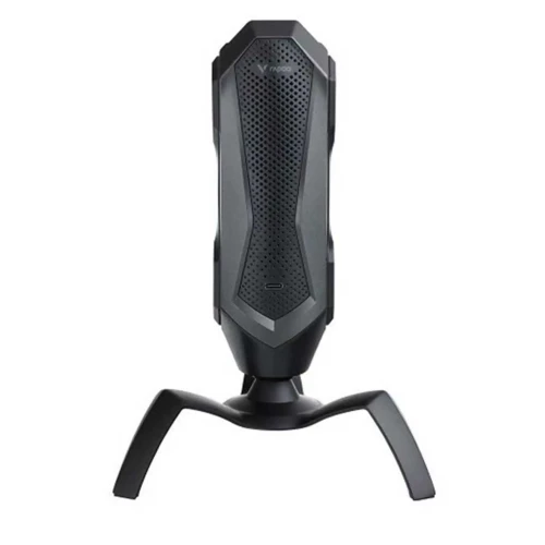 میکروفون VS300 از نوع کاندنسر رومیزی طراحی شده و بدنه اون ترکیبی از فلز و ABS هست که هم استحکام و هم زیبایی داره. وزن دستگاه 447 گرم و ابعادش 170 × 54 × 57 میلیمتره. ارتفاع میکروفون 170 میلیمتر هست و روی یک پایه سهپایه ضدلغزش قرار میگیره که ثبات خیلی خوبی موقع ضبط فراهم میکنه. کابل Type-C به طول 1.8 متر همراه دستگاه ارائه شده و قابلیت چرخش 360 درجهای پایه باعث میشه بتونین زاویه دلخواهتون رو تنظیم کنین. طراحی ظاهری دستگاه با نورپردازی RGB، جلوهای خاص به میز کار یا گیمینگ شما میده.