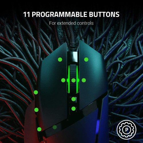 | سایر مشخصات ماوس | طراحی ارگونومیک و قابلیت استفاده در طولانی مدت | اسکرول 4 طرفه | کلیدهای مکانیکال | نرخ گزارش 0.2 میلی ثانیه | کفی موس: PTFE | با کلید اضافی (Paddle) میتوان برنامه خاصی از حمله رو در بازی انجام داد یا حس استفاده از بی سیم واقعی در بازی رو بدست آورد | دارای کلید شلیک | قابلیت ذخیره 5 پروفایل مجزا | برای هایپرشیفت دستور مورد نظر خود را برای هر کلید تعریف میکنید و هنگامی که کلید را فشار دهید و پایین نگه دارید کارکرد ثانویه آن عمل میکند | قابلیت تنظیم مقاومت و میزان اصطحکاک اسکرول | RAZER™ OPTICAL MOUSE SWITCH | سنسور RAZER FOCUS+ OPTICAL | ست شدن RGB با محیط بازی توسط اپلیکیشن |
