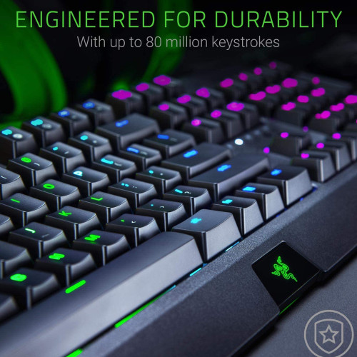 دکمههایی که روی کیبورد ریزر مدل BLACKWIDOW GREEN SWITCHS وجود داره قابلیت ضربهپذیری تا 80 میلیون کلیک داره و میتونین با خیال راحت، بهصورت طولانیمدت از این دستگاه استفاده کنین.