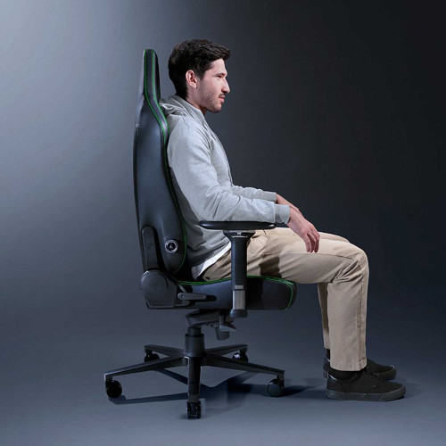 صندلی گیمینگ ریزر مدل ISKUR V2، این صندلی برند RAZER مثل بعضی از صندلیهای گیمینگ دیگه موجود تو بازار از نورپردازی RGB برخوردار نیست. ISKUR V2 قابلیت تنظیم دستههای کناری رو داره به صورتی که با سلیقه و نیاز شما، میتونین این دستهها رو به صورتی که خواستید تنظیم کنین. قابلیت تنظیم ارتفاع این صندلی دارای یکی از بهترین و به روز ترین تکنولوژیهای مربوط به این صنعت رو داره و قرار نیست خیلی زود از کیفیت و بهرهوری اون کم بشه و میتونین تا مدتها از این قابلیت با خیال راحت استفاده کنین. این محصول قابلیت تنظیم زاویه تا ۱۵۲ درجه رو داره و شما میتونین برای استراحت یا لم دادن به هنگام بازی هم از این صندلی استفاده کنین. ISKUR V2 دارای فوم قالب گیری شده با چگالی بالا هست و بالشتک سرش از جنس فوم مموری ساخته شده. این صندلی از بالشتک کمری هم بهرهمنده و برای افراد با قد ۱۶۰ تا ۲۰۰ سانتیمتر طراحی شده.