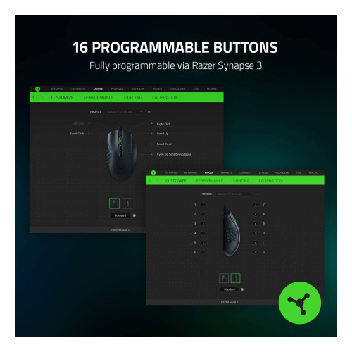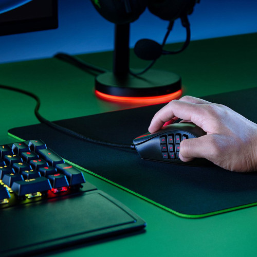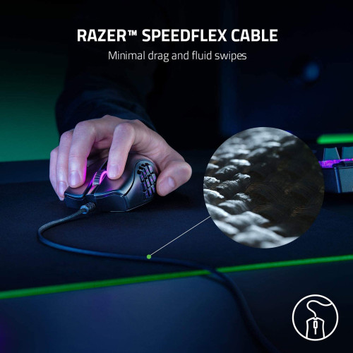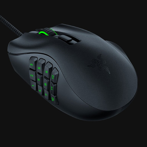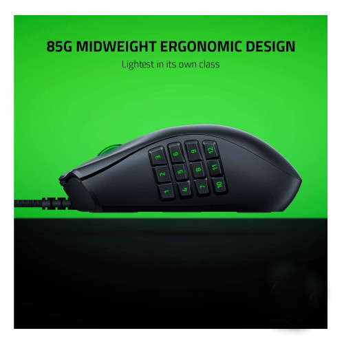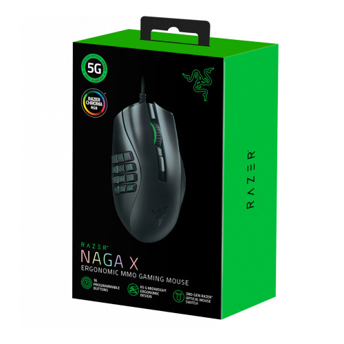 ماوس مخصوص بازی ریزر مدل Naga X یک ماوس جدید و خاص، جدیدترین عضو سری ماوسهای NAGA از کمپانی ریزر است، یک محصول زیبا و منحصربهفرد که بهطور اختصاصی برای بازیهای MMO طراحی و ساخته شده است. از امکانات بسیار خاص و منحصر به فرد این محصول میتوانیم به 16عدد کلید قابلتنظیم بر روی ماوس اشاره کنیم که در اکثر بازیها و در هر موقعیتی به یاری گیمرها میشتابد. بهگفته ریزر کاربران میتوانند این کلیدها را از طریق نرمافزار Razer Synapse 3 تنظیم کنند و با استفاده از تکنولوژی HyperShift تنها با فشردن یک دکمه تنظیمات دیگر خود را وارد عمل کرده و در واقع 32کلید در اختیار داشته باشید. ماوس مخصوص بازی ریزر مدل Razer Naga X با وزنی 30درصد کمتر از Razer Naga Trinity، سبکتر و دارای ارگونومیک بیشتر است که باعث میشود هر حرکتی بدوندردسر احساس شود. این ماوس مخصوص بازی MMO ، برای گیمرهایی با اندازه دست متوسط یا بزرگ توصیه میشود و برای کسانی که سبک چنگزدن را ترجیح میدهند، مناسب است. این ماوس مجهز به نورپردازی Razer Chroma RGB است. اگرچه مانند برخی از ماوسهای سطح بالای دیگر امکان سفارشیسازی کامل نورهای نقاط مختلف را دارا نیست ولی اگر انتظار ندارید که آن را کاملاً رنگارنگ کنید، ناگا ایکس با استفاده از برنامه Synapse تا حدی نورپردازی قابلکنترل ارائه میدهد. شاید در طراحی تنها خُردهای که بتوان به ناگا ایکس گرفت فقدان هرگونه سیستم کنترل وزن باشد. اگرچه از زمانی که ماوس را از جعبه خارج میکنید تا زمان استفاده طولانی مشکل خاصی در وزن دیده نمیشود و با وزن تقریبی 80گرم وزن مناسبی دارد ولی با این قیمت و در این کلاس وجود این قابلیت حس میشود. سنسور موجود در این ماوس گیمینگ MMO که با دقت ردیابی 99.4٪ طراحی شده است، امکان دقت بالاتری را نیز برای شما فراهم میکند. زیرا میتوان از طریق Razer Synapse با تنظیم یک نمایه سطح از پیش تعیین شده یا سفارشیسازی ماوس، کالیبره کرد.