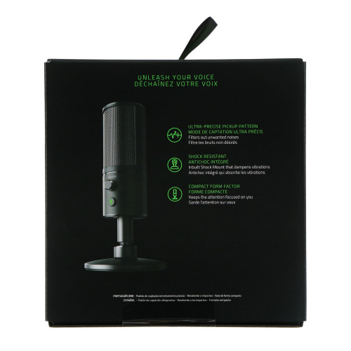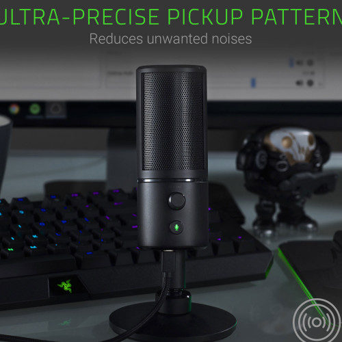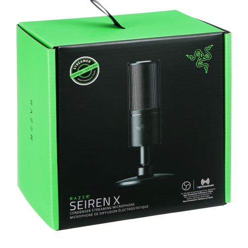 میکروفون ریزر مدل SEIREN X یک میکروفون رومیزی با وزنی کم، ابعادی مناسب و جنسی مرغوب ساخته شده و با کابل به طول 1.8 متر عرضه میشه. میکروفون SEIREN X از یک میکروفون کاندنسر با الگوی قطبی Super-Cardioid استفاده میکنه که به وسیله پورت USB به دستگاههای مختلف متصل میشه. فرکانس پاسخگویی برای هر دو خروجی هدفون و میکروفون از 20 هرتز تا 20 کیلوهرتزه و با یک خروجی درگاه هدفون با قابلیت مانیتورینگ همزمان همراه هستش. این میکروفون از مشخصات فنی برجستهای مثل امپدانس 16 اهم، دیافراگم با سایز ۲۵ میلیمتر، نسبت سیگنال به نویز (SNR) ۸۵ دسیبل و SPL ۱۱۰ دسیبله. از امکانات دیگه این میکروفون میشه به موارد دیگهای مثل تنظیم گین، کلید قطع و وصل میکروفون و مقاومت در برابر ضربه با پایه شوک داخلی اشاره کرد.