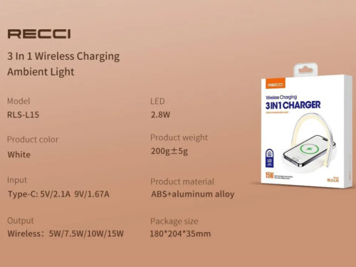 شارژر بی سیم و چراغ خواب رسی مدل RLSL15