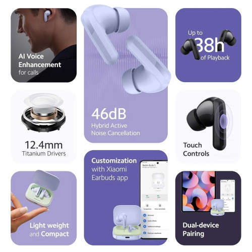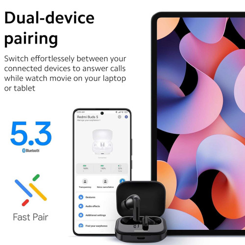 هدفون داخل گوش بی سیم ردمی مدل Buds 5 یکی از جدیدترین و بهترین محصولات این برند در دستهبندی هدفونهای بی سیمه که با قابلیتهای فوقالعادهای مثل نویز کنسلینگ و کنترل کامل بر موسیقی و تماسها عرضه شده. با توجه به طراحی In Ear و پشت بسته (Closed-back)، این هدفونها صدای محیط رو به خوبی حذف میکنن و تجربهای فوقالعاده برای گوش دادن به موسیقی یا مکالمه ارائه میدن.