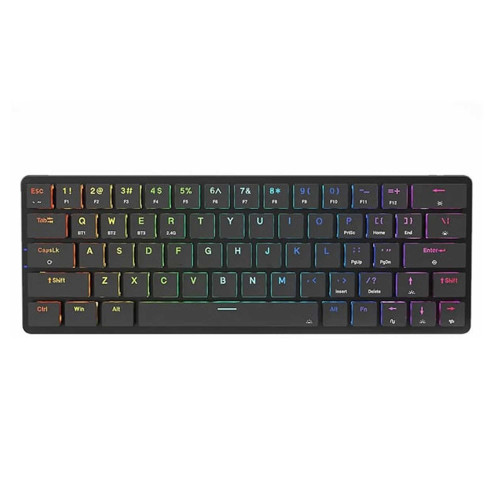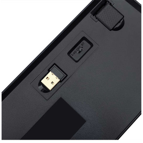 از نظر فنی، این کیبورد با ارائه امکانات متعدد و بهروز طراحی شده. در ابتدا باید گفت که نوع ارتباط این محصول به صورت بی سیم و همچنین با سیم در دسترس هست؛ یعنی میتونین با توجه به نیاز خود از هر دو حالت استفاده کنین. رابطهای موجود شامل دانگل بی سیم 2.4 GHz، پورت USB و بلوتوث هست که باعث میشه اتصال این کیبورد به دستگاههای مختلف به راحتی صورت بگیره. علاوه بر این، این کیبورد به صورت مکانیکال هست که این امر باعث افزایش دقت و طول عمر کلیدها میشه.
