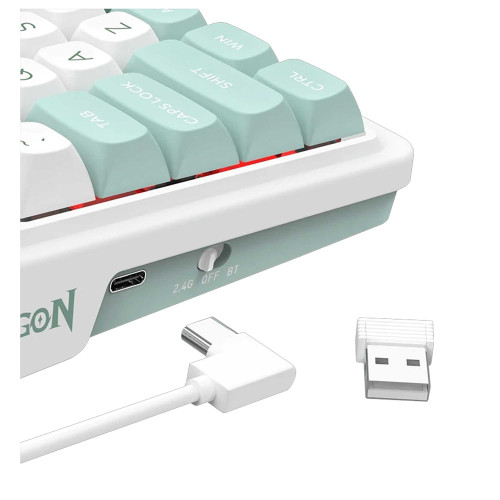 این مدل همزمان از سه نوع اتصال مختلف پشتیبانی میکنه: بلوتوث، دانگل بیسیم 2.4 گیگاهرتز و کابل USB-C قابل جداسازی. یعنی هرطور که راحتتر باشین، میتونین ازش استفاده کنین. کلیدها مکانیکال هستن و از سوئیچهای Mint Mambo (Linear) استفاده میکنن که پاسخدهی سریع و بیصدا دارن. هر کلید تا ۵۰ میلیون بار کلیک رو تحمل میکنه، پس خیالتون از ماندگاری راحت باشه. قابلیت هاتسواپ (Hot-swap) هم داره که یعنی اگه بخواین نوع سوئیچها رو عوض کنین، بهراحتی بدون لحیمکاری انجام میشه.