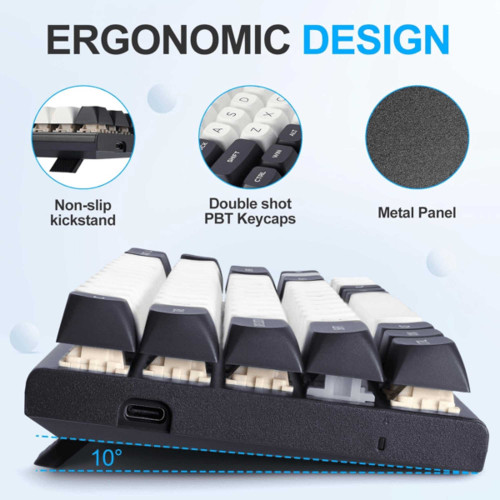 کیبورد گیمینگ ردراگون مدل Irelia K701 WB با طراحی جمعوجور و زیبا، دارای 68 کلید مکانیکال هست که فضای کمتری رو روی میز شما اشغال میکنه. این کیبورد با ابعاد مناسب و وزن سبک، به راحتی قابل حمل هست و برای افرادی که فضای محدودی دارن، گزینهای عالی محسوب میشه. بدنه این کیبورد از جنس پلاستیک با کیفیت ساخته شده که هم مقاومت بالایی داره و هم ظاهری شیک و جذاب به اون میده. کلیدهای این کیبورد از نوع مکانیکال با قابلیت نورپردازی RGB هستن که حس لمس و بازخورد عالی رو به شما منتقل میکنن.