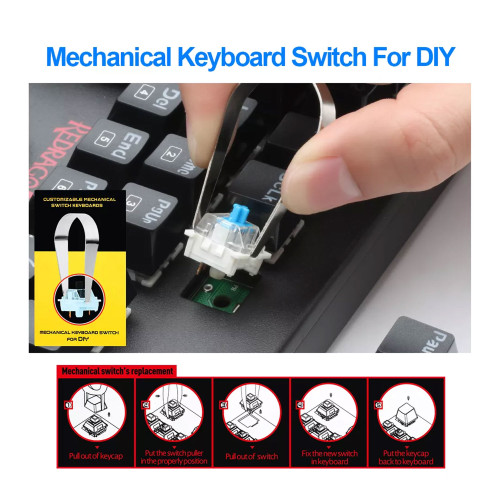 | اقلام همراه کیبرد موس | گیره مخصوص تعویض کلید | دفترچه راهنما | 1 عدد استیکر لوگوی برند |