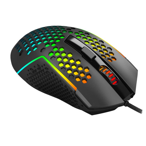 ماوس گیمینگ ردراگون M987 K با وزن فوقالعاده سبک 55 گرم و طراحی Honeycomb (مشبک) ساخته شده که استفاده طولانی مدت از اون رو راحت و بدون خستگی میکنه. جنس بدنه این ماوس از مواد مقاوم و پایههای تفلون ساخته شده که دوام و حرکت روان رو براتون فراهم میکنه. طول کابل 1.8 متری این ماوس به شما آزادی عمل بیشتری میده و میتونین به راحتی ازش استفاده کنین. این ماوس دارای 7 کلید هست که دسترسی سریع به عملکردهای مختلف رو براتون فراهم میکنه. طراحی ارگونومیک این ماوس باعث میشه به راحتی در دست قرار بگیره و برای استفاده طولانی مدت مناسب باشه.