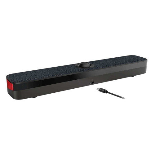 این اسپیکر با وزن 650 گرم و ابعاد 412×176×56 میلیمتر طراحی شده که هم خوشفرمه و هم فضای زیادی روی میز اشغال نمیکنه. بدنه از پلاستیک مقاوم ساخته شده و ظاهر ساده ولی مدرنی داره. طول کابل 1.5 متره که آزادی عمل کافی برای استفاده رومیزی فراهم میکنه. کلیدهای مکانیکی روی دستگاه برای کنترل راحتتر صدا طراحی شدن. بهطور کلی این اسپیکر از نظر ظاهری شیک و کاربردیه و برای فضاهای کاری و گیمینگ بهخوبی جواب میده.