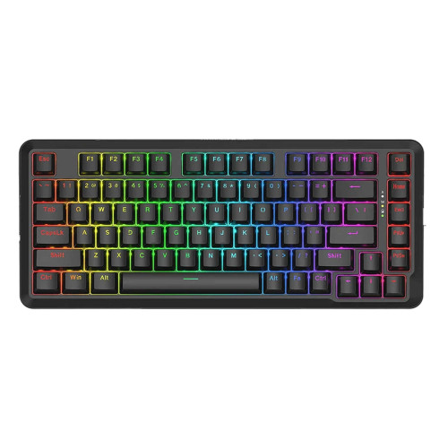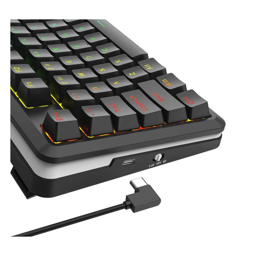 این کیبورد یه مجموعهی کامل از امکانات فنی پیشرفته رو در خودش داره. از مهمترینش، اتصال سهحالته هست که شامل بلوتوث، دانگل USB 2.4GHz و کابل Type-C میشه. به این ترتیب میتونین هم بیسیم بازی کنین و هم وقتی شارژ تموم شد، خیلی راحت با کابل ازش استفاده کنین. در بخش داخلی، یه باتری قدرتمند ۴۰۰۰ میلیآمپرساعتی قرار گرفته که تا ۷۵ ساعت استفاده مداوم رو پشتیبانی میکنه. علاوه بر اون، وجود فوم ضد صدای چندلایه باعث شده صدای تایپ به طرز محسوسی کمتر بشه و حس تایپ نرم و دلپذیری به کاربر بده. نورپردازی RGB با امکان کنترل از طریق نرمافزار اختصاصی، یکی از جذابترین قسمتهای این مدل محسوب میشه. کاربر میتونه افکتهای مختلف، شدت نور و حتی رنگ هر ناحیه رو جداگانه تنظیم کنه. این کیبورد با سیستمعاملهای Windows و Mac کاملاً سازگاره و بدون نیاز به نصب درایور خاصی، بهسرعت شناسایی میشه.