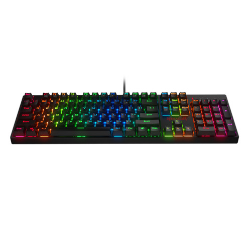 | سایر مشخصات کیبرد | دسترسی آسان به 12 عملکرد چند رسانه ای و اینترنتی از طریق کلید FN | قابلیت تغییر رنگ RGB به 18 حالت مختلف | قابلیت قفل کردن کلید Win | عملکرد بدون تداخل Non-Conflict | قابلیت تنظیم میزان روشنایی نور پس زمینه | قابلیت فشردن تمامی کلیدها به صورت همزمان و بدون تداخل؛ کلیدهای قابل برنامه ریزی |