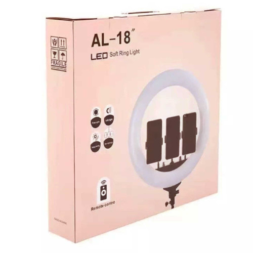 رینگ لایت AL-18 50W اندازه خیلی خوبی داره و با قطر داخلی 32 و قطر خارجی 45 سانتیمتر تولید شده. ضخامت اون هم 36 میلیمتره. این محصول با یه کابل 3 متری به برق وصل میشه و این ویژگی کمک میکنه تا محدودیت حرکتی زیادی نداشته باشین. برای استفاده از این محصول میتونین نورش رو با استفاده از ریموت کنترل یا پنلی که روی بدنه اون قرار گرفته، تغییر بدین.