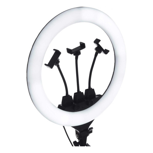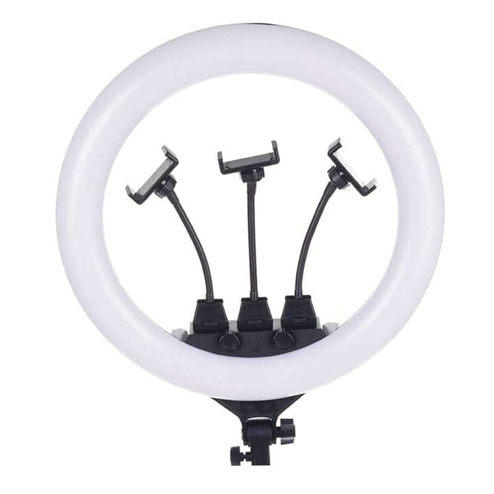 یه نکته مثبت دیگه توی رینگ لایت zb-f488، وجود سه هولدریه که دقیقا روی قسمت پایینی اون وصل شدن و توی مرکزش قرار گرفتن. شما با استفاده از این هولدرها میتونین با سه گوشی مختلف تصاویرتون رو ثبت کنین و دیگه نیازی به خرید پایه موبایل ندارین.