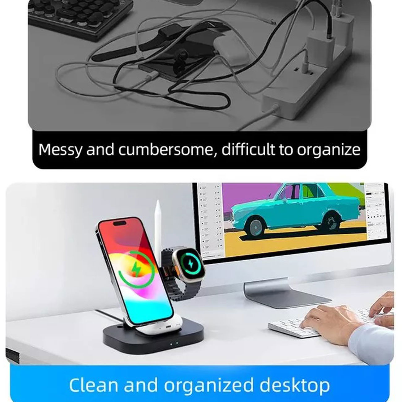 - قابل استفاده برای شارژ گوشی همراه، اپل واچ، ایرپاد و قلم لمسی