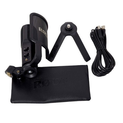 NT-USB یک میکروفون قدرتمند با آدرس دهی جانبی است که علاوه بر کاربردهای گفتاری مانند پادکست و صداگذاری مناسب برای ضبط آواز و اجراهای موسیقی است. این میکروفون از یک الگوی قطبی کاردیود جهت دار برای کاهش صداهای خارج از محور و سر و صداهای پشت میکروفون استفاده می کند. صدا با وضوح 24 بیت/48 کیلوهرتز دریافت و ضبط می شود و صدایی با کیفیت بالا ارائه می دهد. این الگوی قطبی بطور طبیعی و بصورت موثر صداهای موجود در اتاق را کاهش داده و ضبط صدا متمرکز بر روی چیزی می شود که مستقیماً جلوی میکروفن قرار دارد. این میکروفون استودیویی سازگاری کامل با تمامی برنامه های ضبط در رایانه های ویندوزی و مک و همچنین Apple iPad، با استفاده از برنامه هایی مانند RØDE Reporter App، GarageBand یا هر برنامه ضبط دیگری که از میکروفون اکسترنال پشتیبانی می کند، دارد. برای استفاده با Apple iPad شما نیاز به آداپتور اتصال USB مناسب مانند کیت اتصال دوربین اپل نیاز دارید. بر روی بدنه NT-USB یک جک 3.5 میلیمتری مانیتورینگ هدفون استریویی وجود دارد که به شما امکان می دهد بر ورودی میکروفون در لحظه و به صورت بی درنگ نظارت کنید و در کنار آن دو ولووم چرخشی برای تنظیم سطح صدای هدفون و ترکیب ورودی میکروفون و صدای رایانه و یا آیپد وجود دارد. یک پاپ فیلتر با کیفیت به همراه این محصول عرضه شده که بر روی پایه میکروفون نصب می شود و فیلتر را در فاصله مناسبی از کپسول قرار می دهد تا تأثیر حروف انفجاری مانند(ب،پ)در حین صحبت و آواز خوانی که صدای خشن تولید می کند را به حداقل برساند. همچنین یک پایه با کیفیت با سرپیچ 8/3 اینچی رومیزی که به میکروفون اجازه می دهد تا در ارتفاع مناسب بر روی میز قرار گیرد و یک کیسه نگهداری میکروفون و کابل USB به همراه آن وجود دارد.