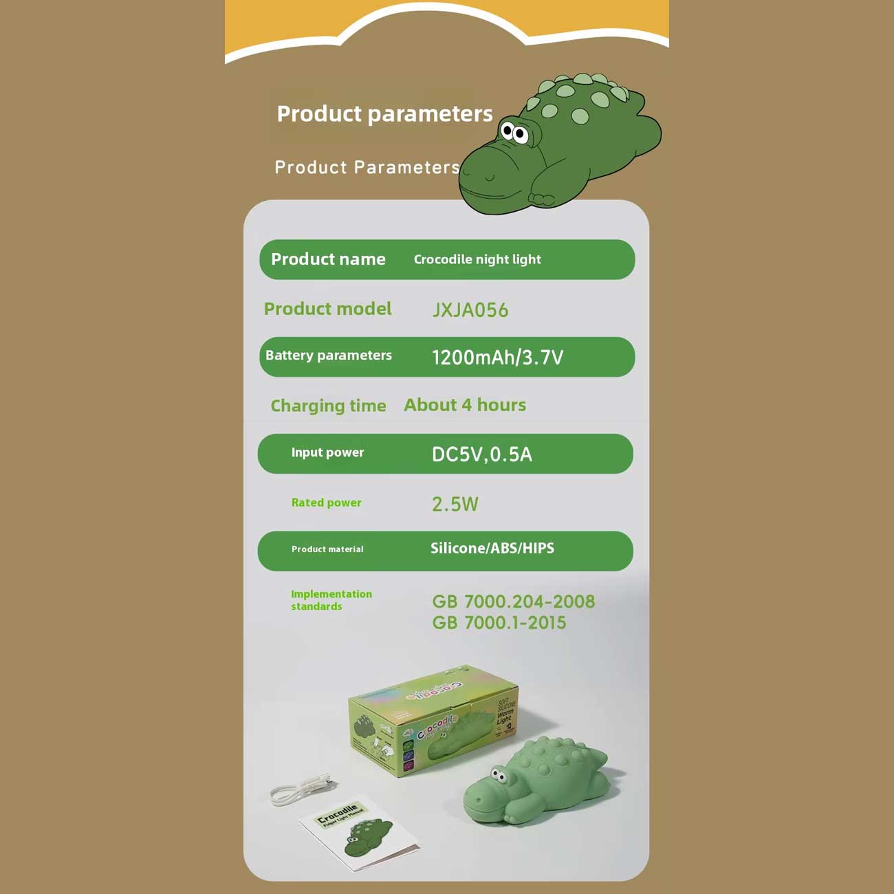 Runmei Crocodile Shape Silicone Night Light JXJA056